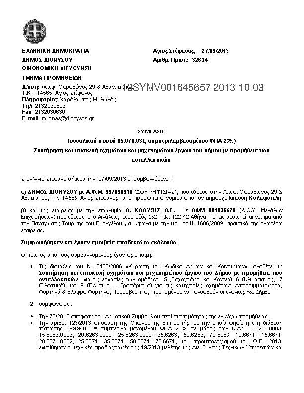 9. Συντήρηση και επισκευή οχημάτων και μηχανημάτων έργων του Δήμου με προμήθεια των ανταλλακτικών