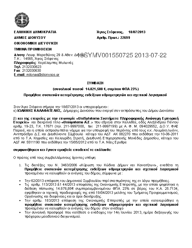 10. ΣΥΜΒΑΣΗ ΓΙΑ ΠΡΟΜΗΘΕΙΑ ΣΥΣΚΕΥΩΝ ΚΑΤΑΜΕΤΡΗΣΗΣ ΕΝΔΕΙΞΕΩΝ ΥΔΡΟΜΕΤΡΗΤΩΝ ΚΑΙ ΣΧΕΤΙΚΟΥ ΛΟΓΙΣΜΙΚΟΥ