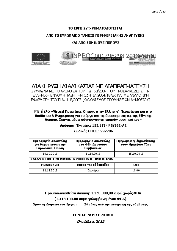 9. «Virtual Πρεμιέρες Όπερας στην Ελληνική Περιφέρεια και στο διαδίκτυο & Ενημέρωση για το έργο και τις δραστηριότητες της Εθνικής Λυρικής Σκηνής μέσω σύγχρονων ψηφιακών συστημάτων»