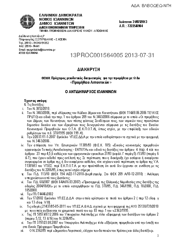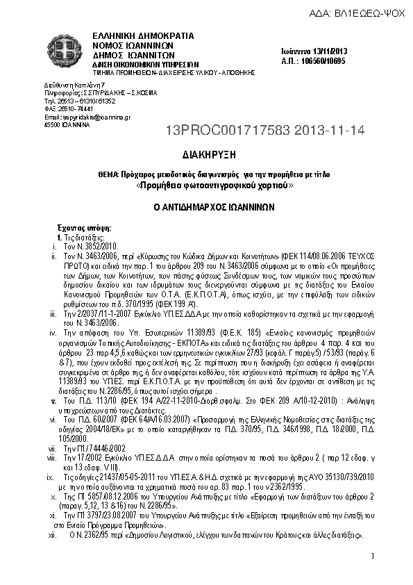 1. ΔΙΑΚΗΡΥΞΗ ΘΕΜΑ: Πρόχειρος μειοδοτικός διαγωνισμός για την προμήθεια με τίτλο «ΠΡΟΜΗΘΕΙΑ ΕΝΤΥΠΩΝ ΚΑΙ ΥΛΙΚΩΝ ΜΗΧΑΝΟΓΡΑΦΗΣΗΣ ΚΑΙ ΠΟΛΛΑΠΛΩΝ ΕΚΤΥΠΩΣΕΩΝ»
