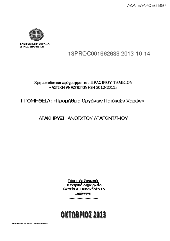 Αναζήτηση σε προκηρύξεις και συμβάσεις για: