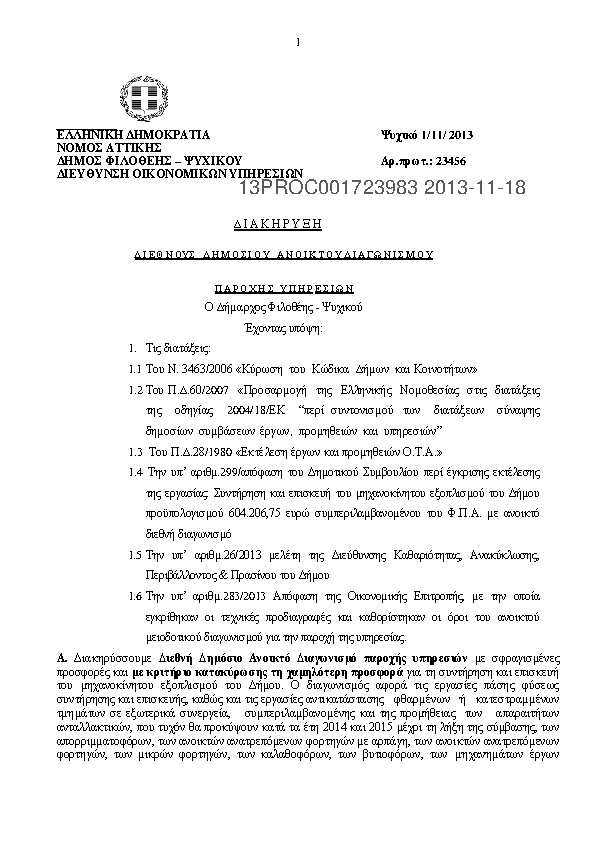 1. ΣΥΝΤΗΡΗΣΗ ΚΑΙ ΕΠΙΣΚΕΥΗ ΤΟΥ ΜΗΧΑΝΟΚΙΝΗΤΟΥ ΕΞΟΠΛΙΣΜΟΥ ΤΟΥ ΔΗΜΟΥ