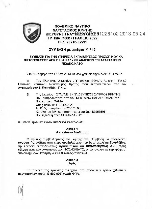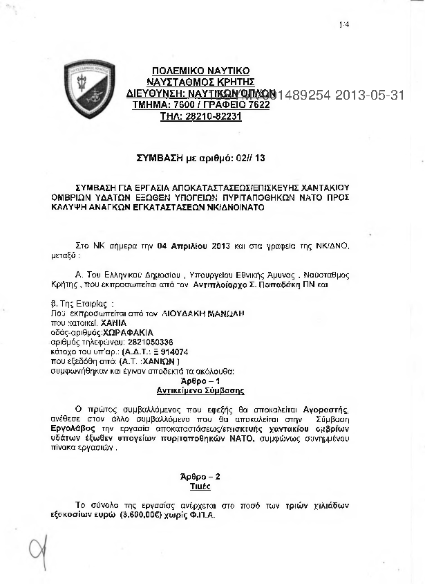 3. ΣΥΜΒΑΣΗ ΓΙΑ ΕΡΓΑΣΙΑ ΕΠΙΣΚΕΥΗΣ ΧΑΝΤΑΚΙΟΥ ΟΜΒΡΙΩΝ ΥΔΑΤΩΝ ΕΞΩΘΕΝ ΥΠΟΓΕΙΩΝ ΠΥΡΙΤΑΠΟΘΗΚΩΝ ΝΑΤΟ