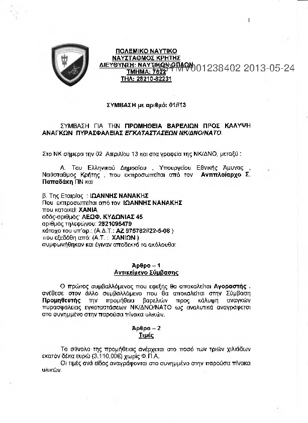 8. ΣΥΜΒΑΣΗ ΓΙΑ ΤΗΝ ΠΡΟΜΗΘΕΙΑ ΒΑΡΕΛΙΩΝ ΠΥΡΑΣΦΑΛΕΙΑΣ