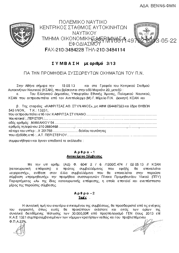 5. ΠΡΟΜΗΘΕΙΑ ΣΥΣΣΩΡΕΥΤΩΝ ΟΧΗΜΑΤΩΝ ΤΟΥ Π.Ν ΑΡ. 3/13