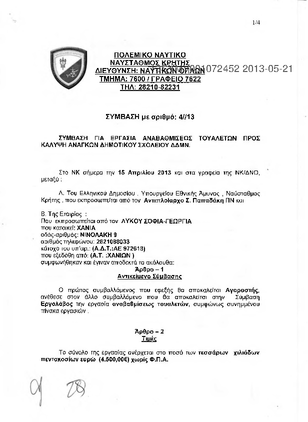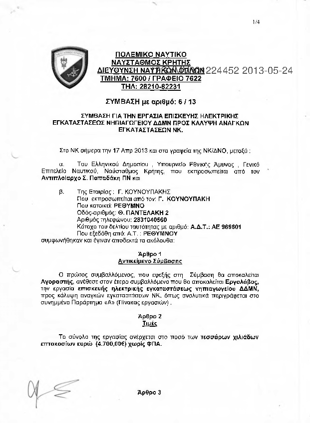 7. ΣΥΜΒΑΣΗ ΓΙΑ ΕΡΓΑΣΙΑ ΕΠΙΣΚΕΥΗΣ ΗΛΕΚΤΡΙΚΗΣ ΕΓΚΑΤΑΣΤΑΣΗΣ ΝΗΠΙΑΓΩΓΕΙΟΥ ΔΔΜΝ