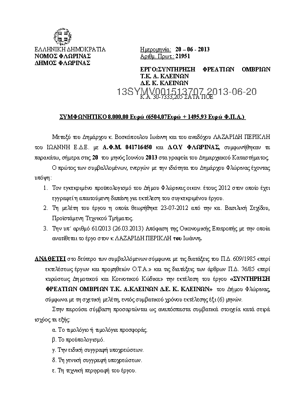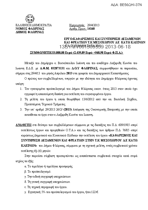 1. ΕΡΓΟ : ΚΑΘΑΡΙΣΜΟΣ ΚΑΙ ΣΥΝΤΗΡΗΣΗ ΔΕΞΑΜΕΝΩΝ ΚΑΙ ΦΡΕΑΤΙΩΝ Τ.Κ. ΜΕΣΟΧΩΡΙΟΥ Δ.Ε. ΚΑΤΩ ΚΛΕΙΝΩΝ (ΣΑΤΑ ΠΟΕ)