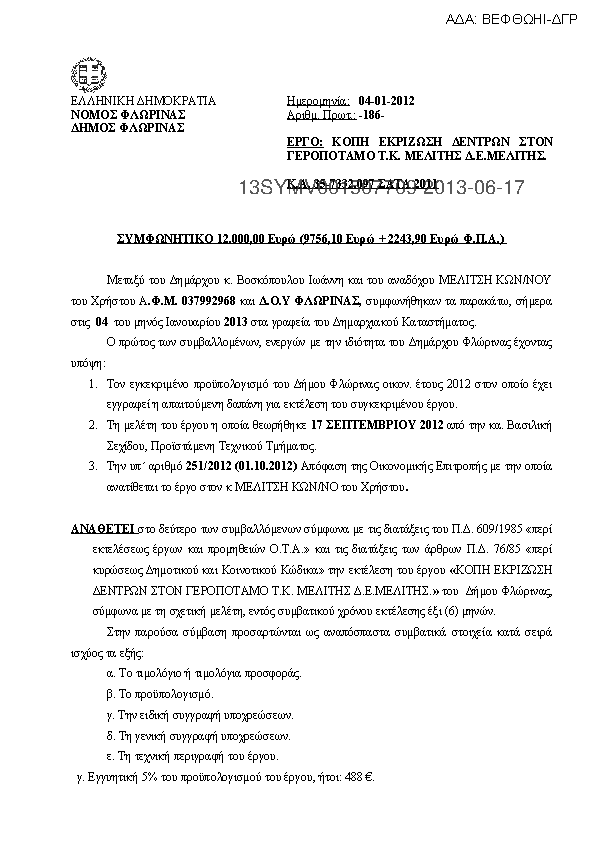 8. ΕΡΓΟ : ΚΟΠΗ ΕΚΡΙΖΩΣΗ ΔΕΝΤΡΩΝ ΣΤΟΝ ΓΕΡΟΠΟΤΑΜΟ Τ.Κ. ΜΕΛΙΤΗΣ Δ.Ε. ΜΕΛΙΤΗΣ