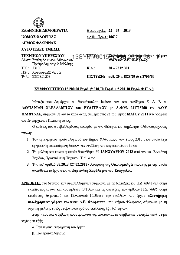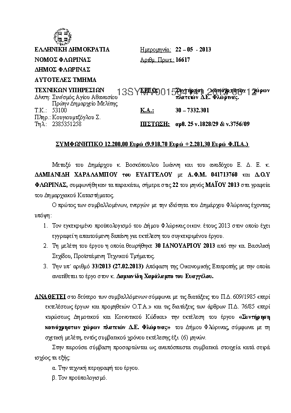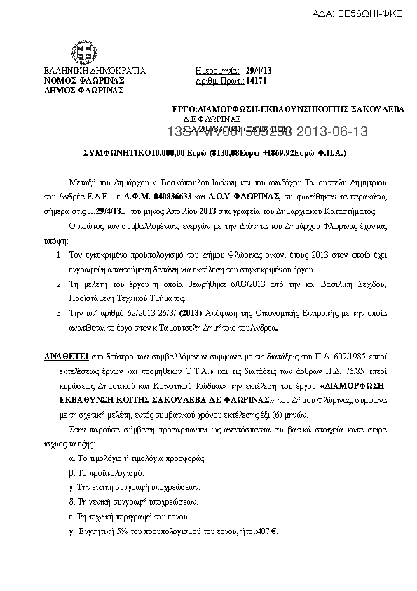 10. ΣΥΝΤΗΡΗΣΗ ΚΟΙΝΟΧΡΗΣΤΩΝ ΧΩΡΩΝ ΠΛΑΤΕΙΩΝ Δ.Ε. ΦΛΩΡΙΝΑΣ