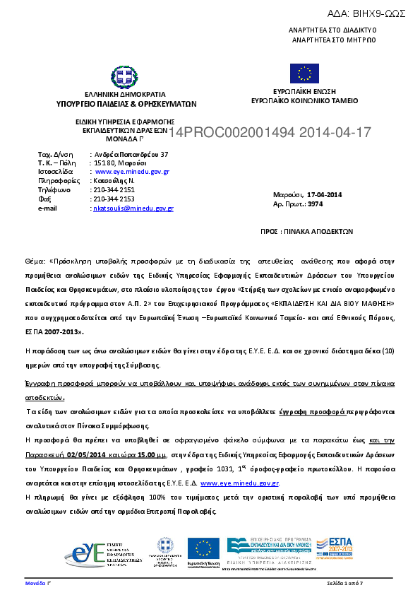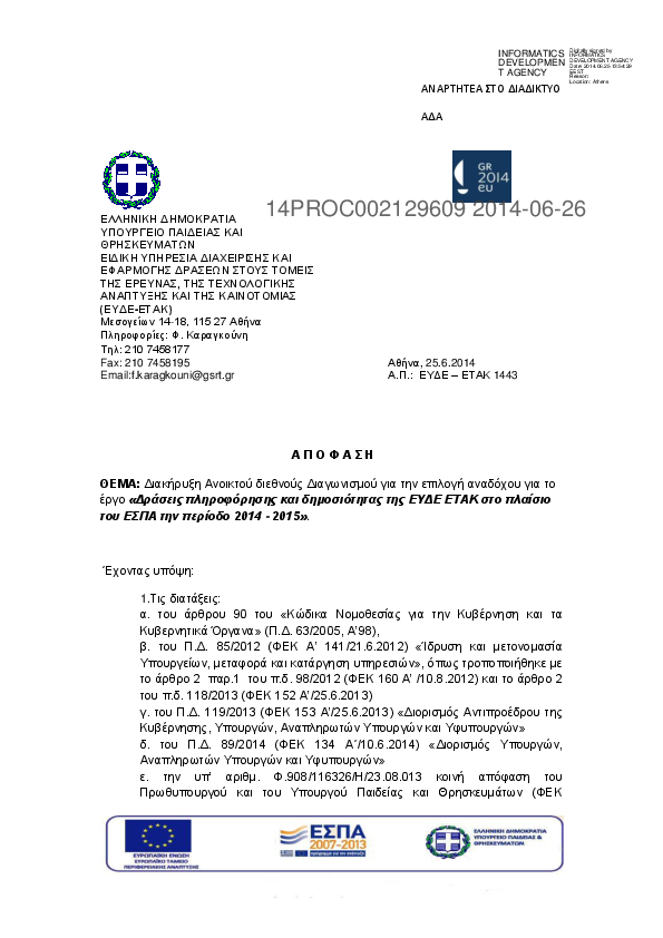 Αναζήτηση σε προκηρύξεις και συμβάσεις για:  Ταμείο
