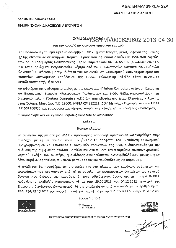 6. ΣΥΜΦΩΝΙΑ ΠΛΑΙΣΙΟ ΓΙΑ ΤΗΝ ΠΡΟΜΗΘΕΙΑ ΦΩΤΟΑΝΤΙΓΡΑΦΙΚΟΥ ΧΑΡΤΙΟΥ