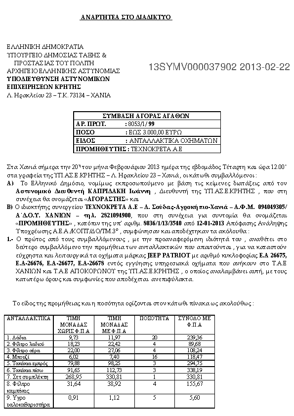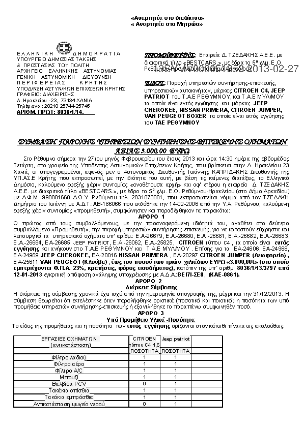 Αναζήτηση σε προκηρύξεις και συμβάσεις για: