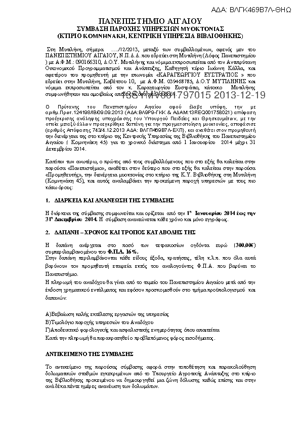 7. Σύμβαση Παροχής Υπηρεσιών Μυοκτονίας στην Κεντρική Υπηρεσία της Βιβλιοθήκης