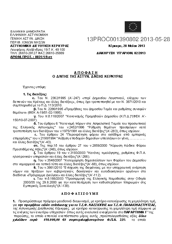 8. ΔΙΑΚΗΡΥΞΗ ΥΠ'ΑΡΙΘΜ. 02/2013 ΤΗΣ Α.Δ.ΚΕΡΚΥΡΑΣ