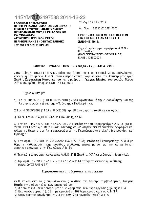 8. ΜΙΣΘΩΣΗ ΜΗΧΑΝΗΜΑΤΩΝ ΓΙΑ ΕΚΤΑΚΤΕΣ ΑΝΓΚΕΣ Π.Ε. ΞΑΝΘΗΣ 2013