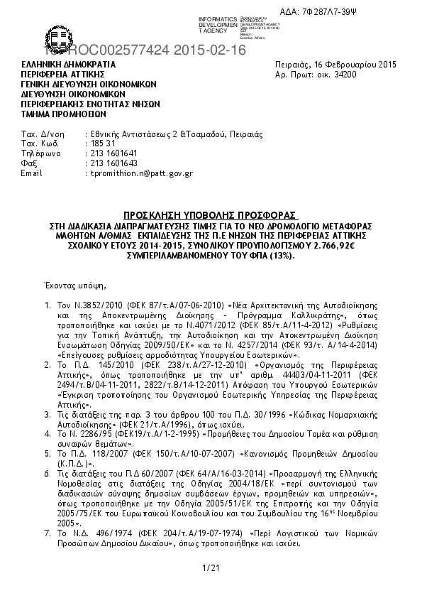 2. ΕΠΑΝΑΛΗΠΤΙΚΗ ΠΡΟΣΚΛΗΣΗΥΠΟΒΟΛΗΣ ΠΡΟΣΦΟΡΑΣ ΓΙΑ ΤΑ ΔΡΟΜΟΛΟΓΙΑ ΜΕΤΑΦΟΡΑΣ ΜΑΘΗΤΩΝ ΠΟΥ ΑΦΟΡΟΥΝ ΤΟ ΜΟΥΣΙΚΟ ΣΧΟΛΕΙΟ ΠΕΙΡΑΙΑ ΚΑΙ ΤΟ 3ο ΓΥΜΝΑΣΙΟ ΠΕΡΑΜΑΤΟΣ, ΜΕ ΤΗΝ ΔΙΑΔΙΚΑΣΙΑ ΤΗΣΔΙΑΠΡΑΓΜΑΤΕΥΣΗΣ ΤΙΜΗΣ.