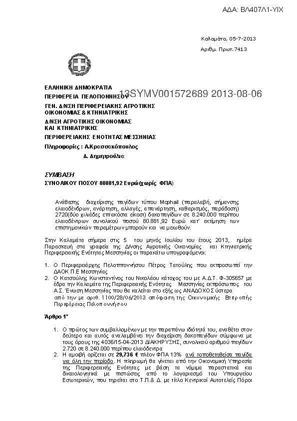 5. Σύμβαση ανάθεσης διαχείρισης παγίδων τύπου Mcphail για το πρόγραμμα Δακοκτονίας 2013