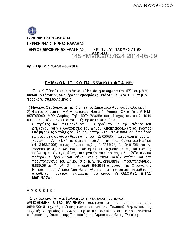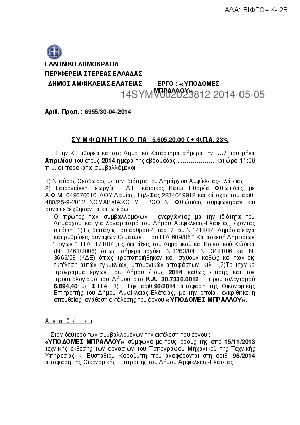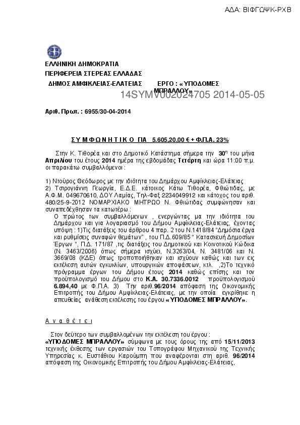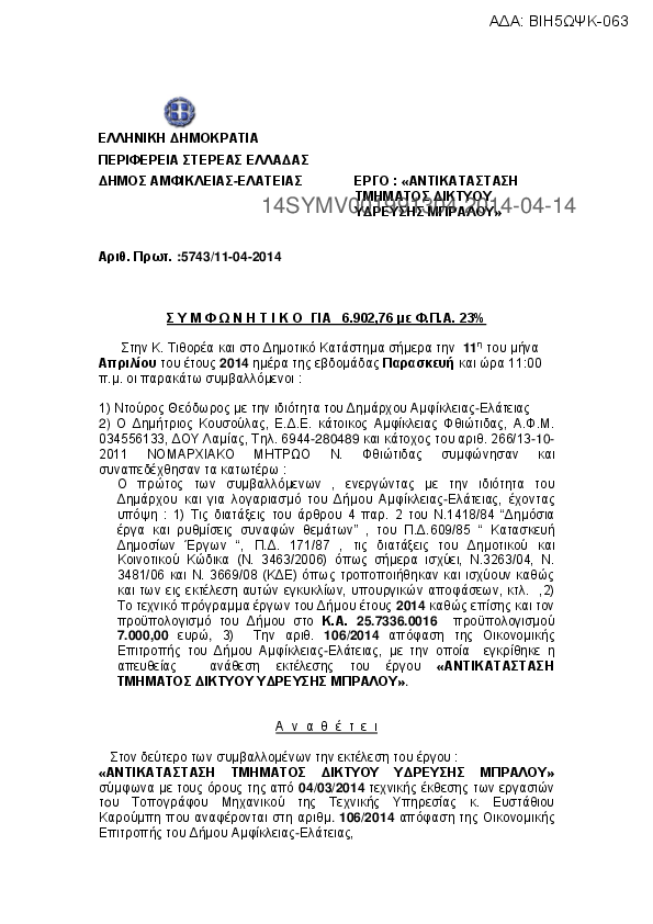 1. ΣΥΜΦΩΝΗΤΙΚΟ ΓΙΑ ΑΝΤΙΚΑΤΑΣΤΑΣΗ ΤΜΗΜΑΤΟΣ ΔΙΚΤΥΟΥ ΥΔΡΕΥΣΗΣ ΜΠΡΑΛΟΥ