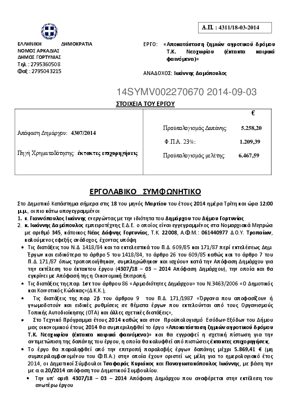 Αναζήτηση σε προκηρύξεις και συμβάσεις για:
