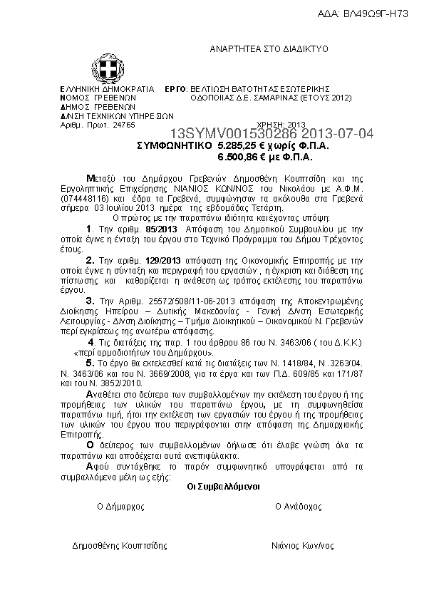 1. ΒΕΛΤΙΩΣΗ ΒΑΤΟΤΗΤΑΣ ΕΣΩΤΕΡΙΚΗΣ ΟΔΟΠΟΙΙΑΣ Δ.Ε ΣΑΜΑΡΙΝΑΣ (ΕΤΟΥΣ 2012)