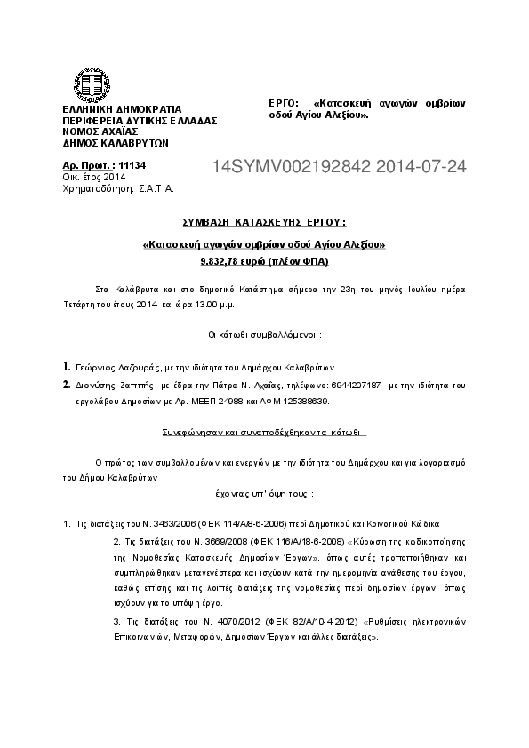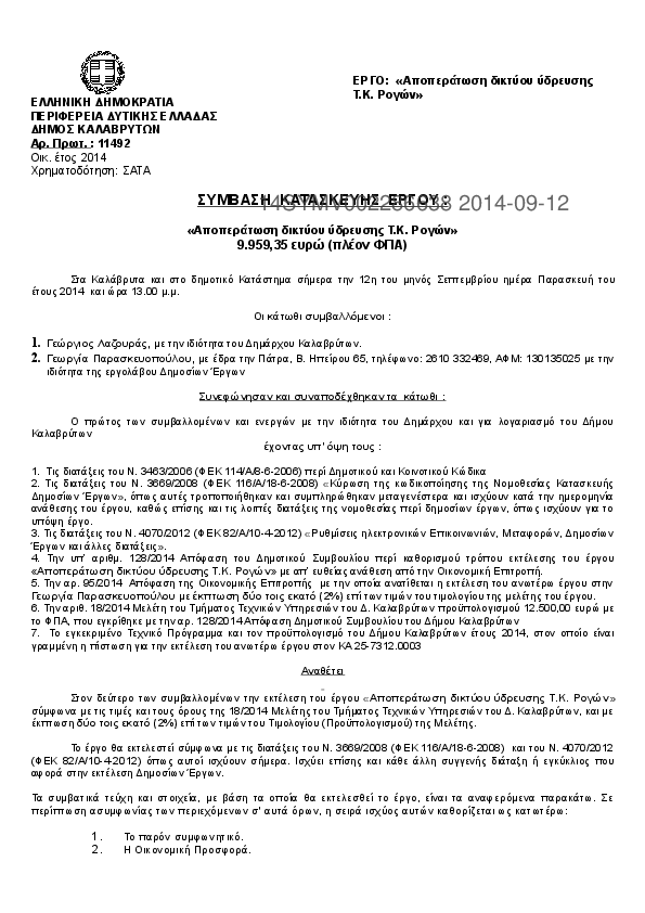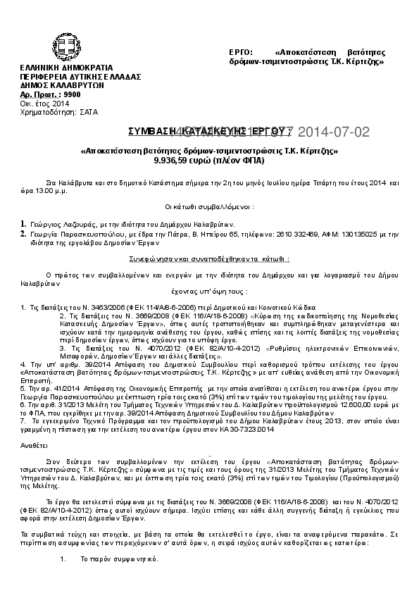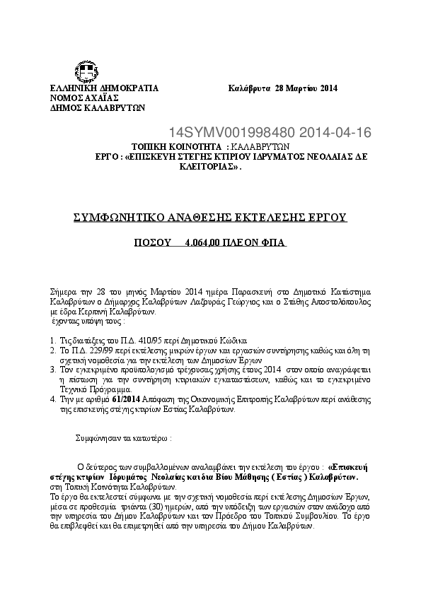 1. ΕΠΙΣΚΕΥΗ ΣΤΕΓΗΣ ΚΤΙΡΙΩΝ ΙΔΡΥΜΑΤΟΣ ΝΕΟΛΑΙΑΣ & ΔΙΑ ΒΙΟΥ ΜΑΘΗΣΗΣ Τ.Κ ΚΑΛΑΒΡΥΤΩΝ