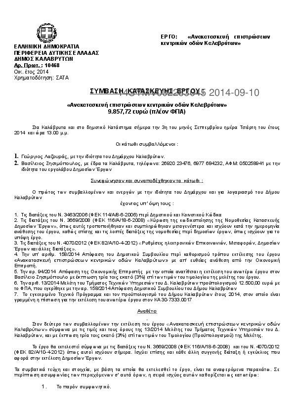 8. ΑΝΑΚΑΤΑΣΚΕΥΗ ΕΠΙΣΤΡΩΣΕΩΝ ΚΕΝΤΡΙΚΩΝ ΟΔΩΝ ΚΑΛΑΒΡΥΤΩΝ