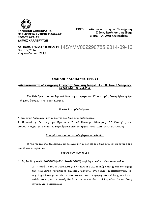 10. ANΤΙΚΑΤΑΣΤΑΣΗ - ΣΥΝΤΗΡΗΣΗ ΣΤΕΓΗΣ ΣΧΟΛΕΙΟΥ ΣΤΗ ΘΕΣΗ ΙΤΙΑ ΤΚ ΑΝΩ ΚΛΕΙΤΟΡΙΑΣ