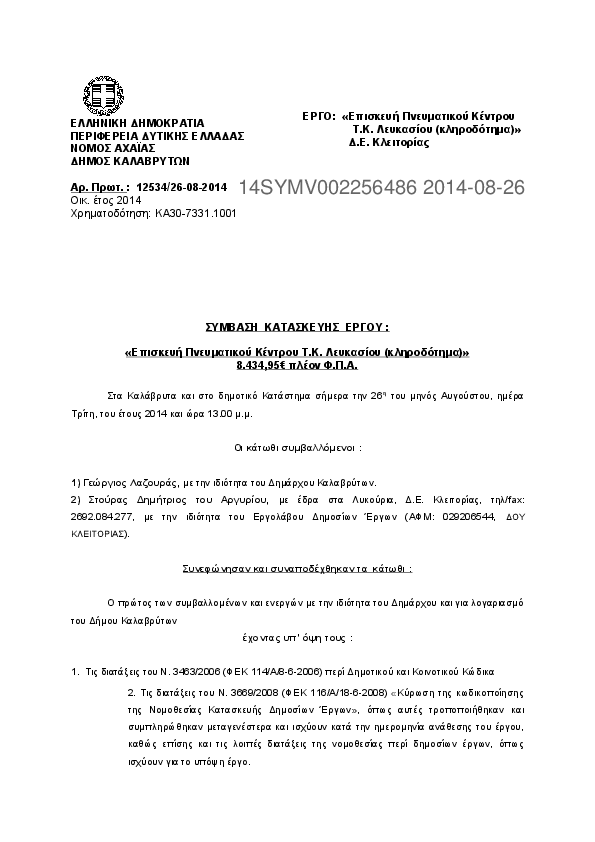 Αναζήτηση σε προκηρύξεις και συμβάσεις για: