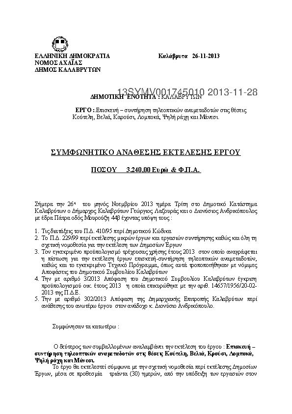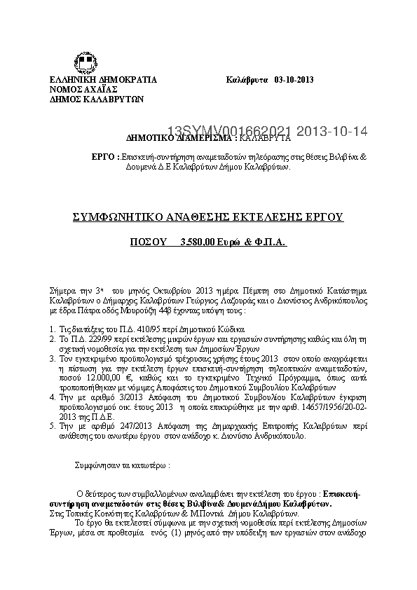 Αναζήτηση σε προκηρύξεις και συμβάσεις για: