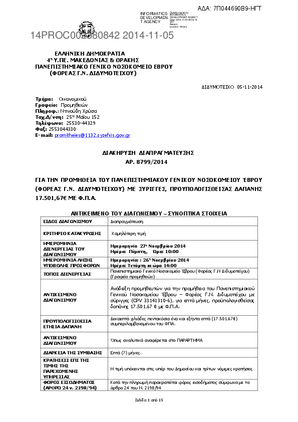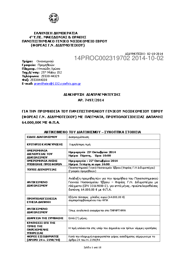 Αναζήτηση σε προκηρύξεις και συμβάσεις για: