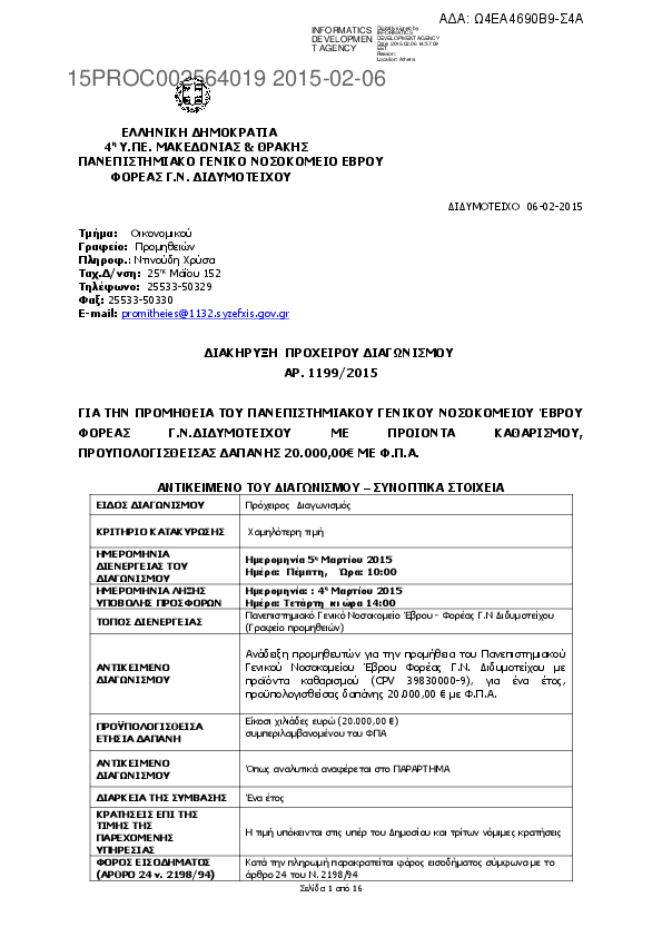 Αναζήτηση σε προκηρύξεις και συμβάσεις για: