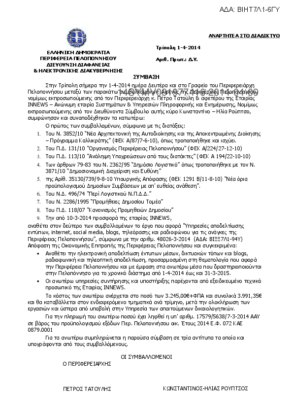 Αναζήτηση σε προκηρύξεις και συμβάσεις για: