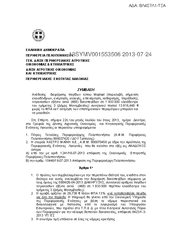 4. ΣΥΜΒΑΣΗ ΑΝΑΘΕΣΗΣ ΔΙΑΧΕΙΡΙΣΗΣ ΠΑΓΙΔΩΝ ΜΕ ΚΑΣΤΡΟ ΜΑΪΝΗ Α.Ε.