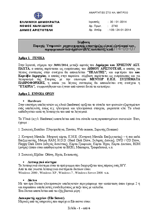10. Σύμβαση Παροχής Υπηρεσιών μηχανογραφικής υποστήριξης υλικού εξοπλισμού και περιφερειακών συστημάτω
