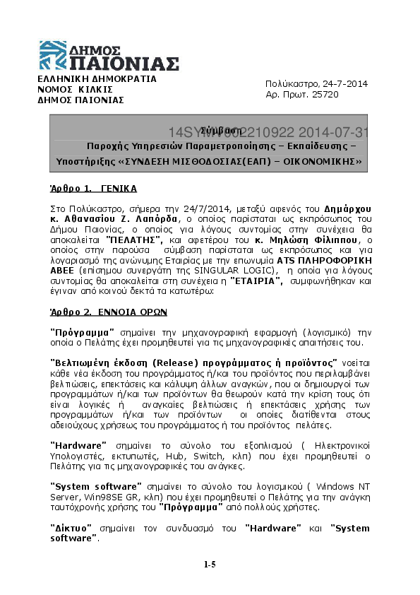 7. Σύμβαση Παροχής Υπηρεσιών Παραμετροποίησης – Εκπαίδευσης – Υποστήριξης «ΣΥΝΔΕΣΗ ΜΙΣΘΟΔΟΣΙΑΣ(ΕΑΠ) – Ο