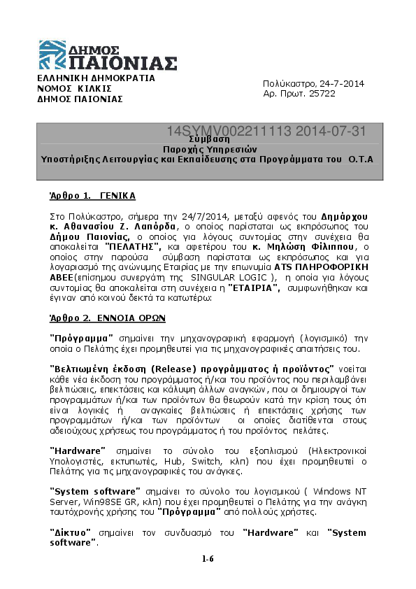 6. Σύμβαση Παροχής Υπηρεσιών Υποστήριξης Λειτουργίας και Εκπαίδευσης στα Προγράμματα του Ο.Τ.Α