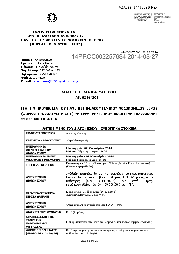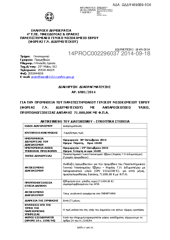 Αναζήτηση σε προκηρύξεις και συμβάσεις για: