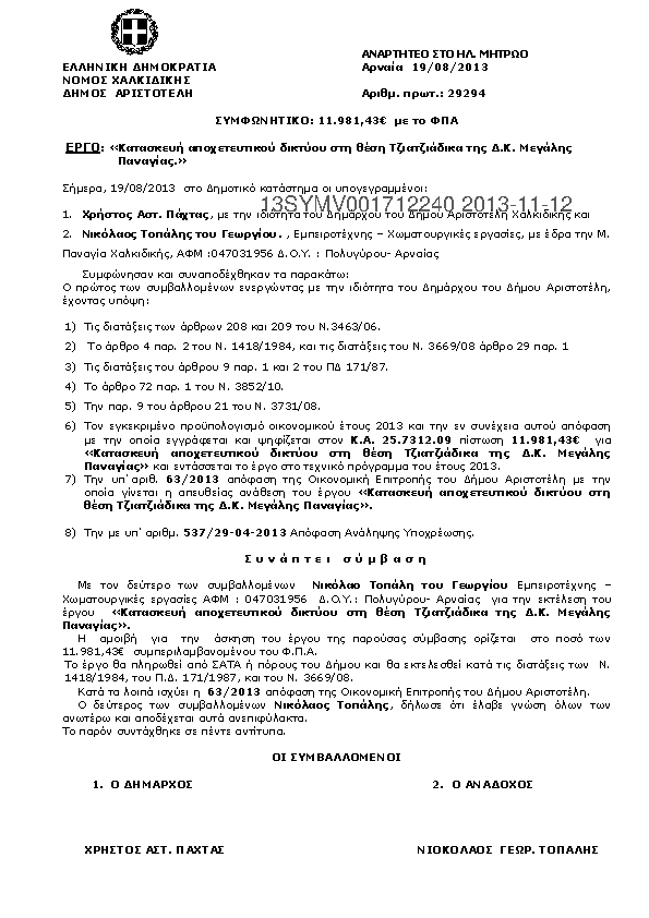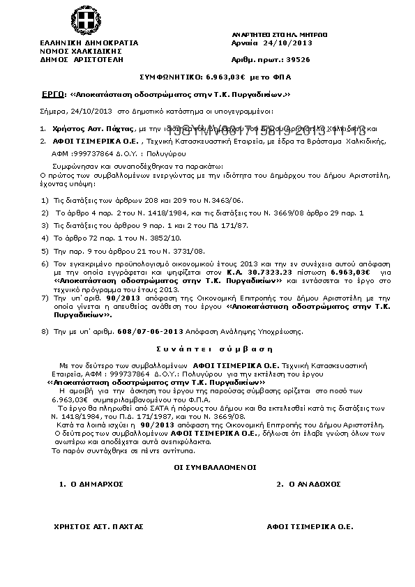 3. ΣΥΜΦΩΝΗΤΙΚΟ Επισκευή δικτύου όμβριων υδάτων Δ.Κ. Ιερισσού στο δρόμο (Αρχαίων Σταγεί