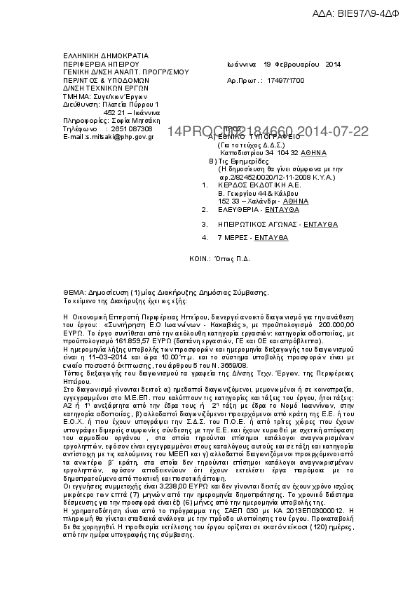 Αναζήτηση σε προκηρύξεις και συμβάσεις για: