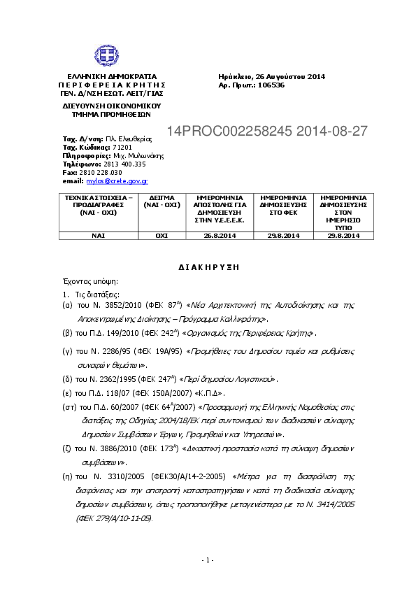 Αναζήτηση σε προκηρύξεις και συμβάσεις για: