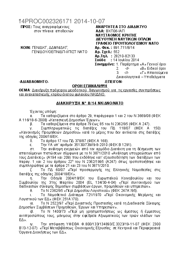 Αναζήτηση σε προκηρύξεις και συμβάσεις για: