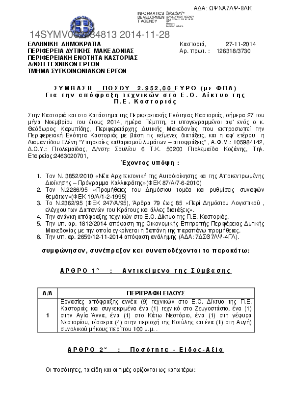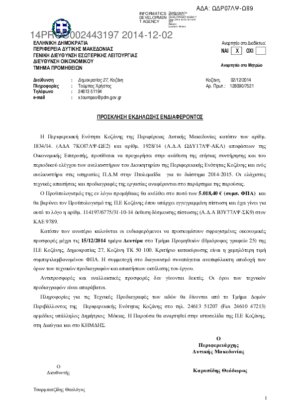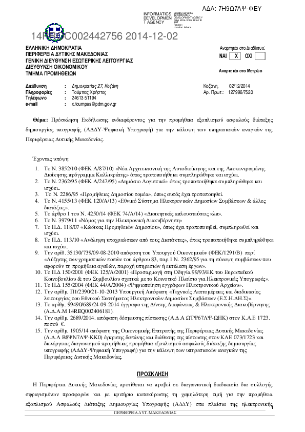Αναζήτηση σε προκηρύξεις και συμβάσεις για:  Τεχνικό
