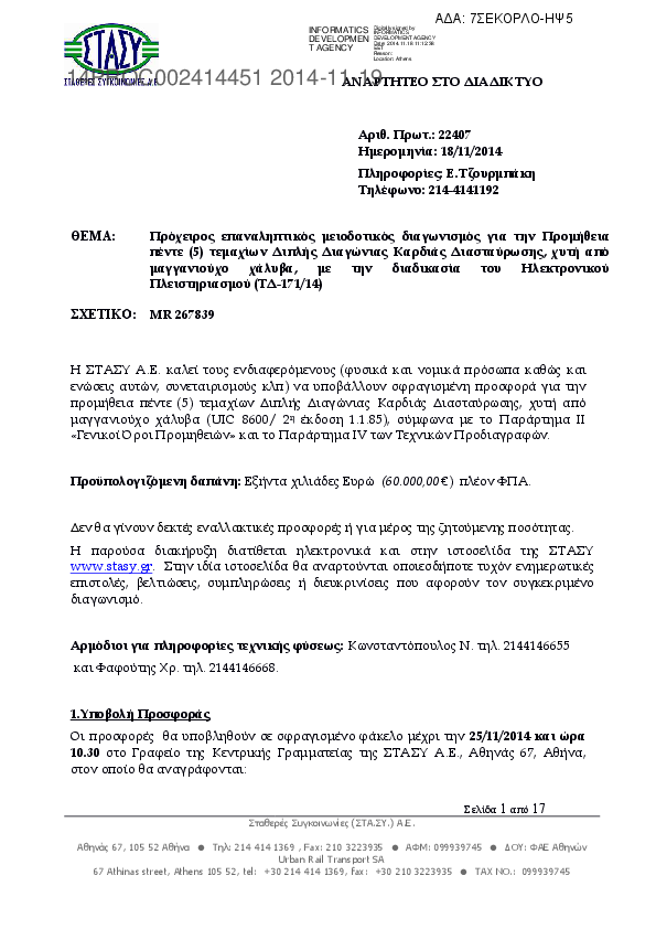 Αναζήτηση σε προκηρύξεις και συμβάσεις για: