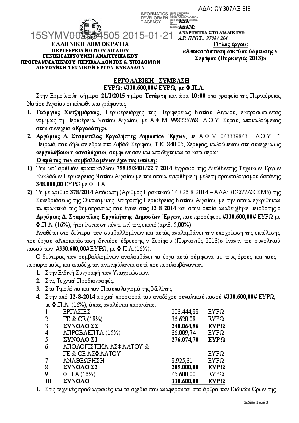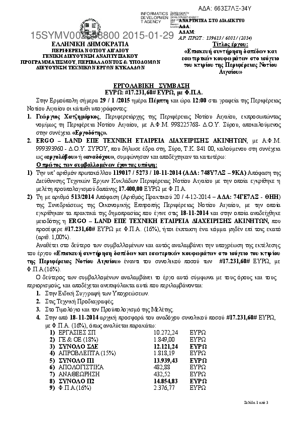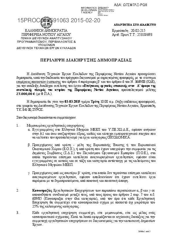 Αναζήτηση σε προκηρύξεις και συμβάσεις για: