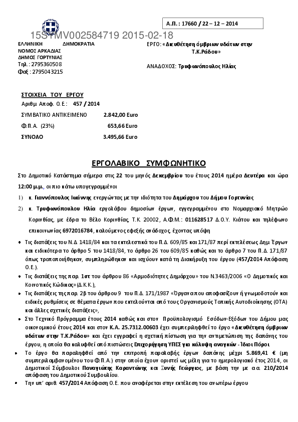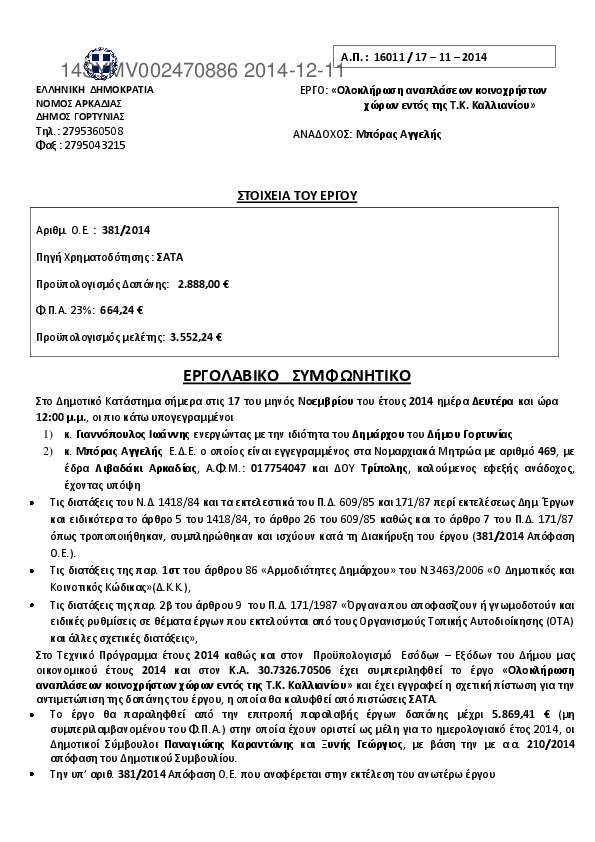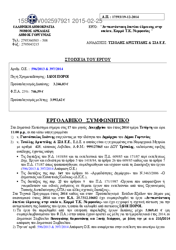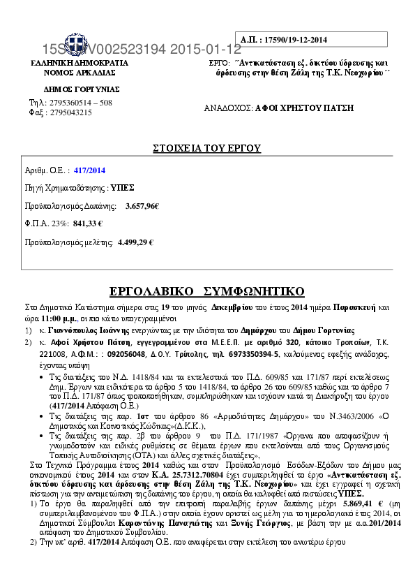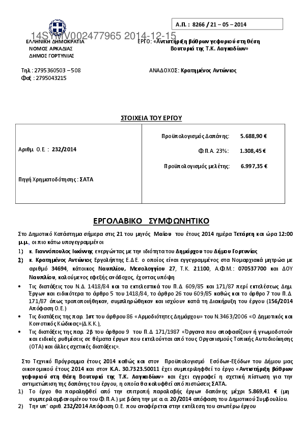 Αναζήτηση σε προκηρύξεις και συμβάσεις για:  Τεχνικό