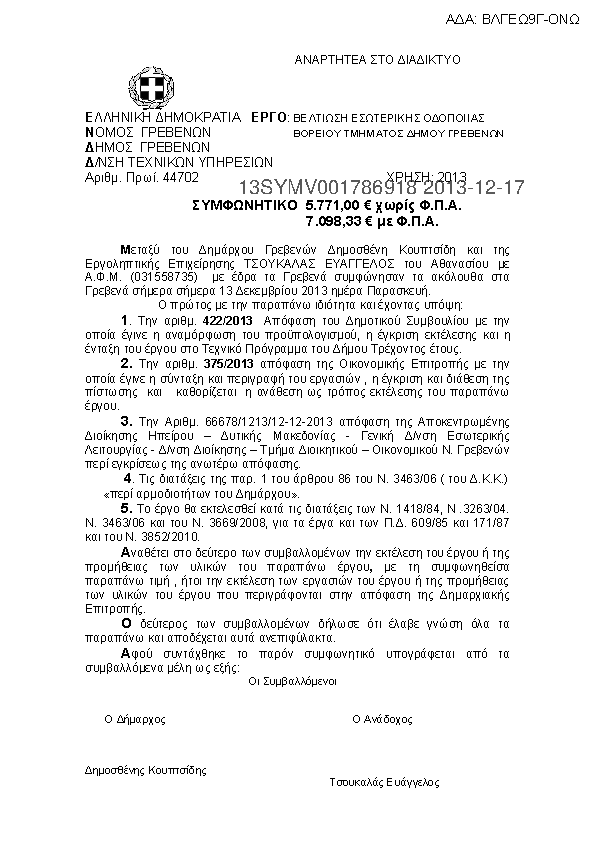 7. ΒΕΛΤΙΩΣΗ ΕΣΩΤΕΡΙΚΗΣ ΟΔΟΠΟΙΙΑΣ ΒΟΡΕΙΟΥ ΤΜΗΜΑΤΟΣ ΔΗΜΟΥ ΓΡΕΒΕΝΩΝ