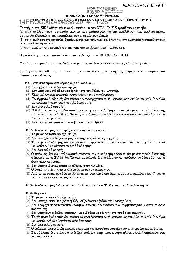 1. ΠΡΟΣΚΛΗΣΗ ΕΝΔΙΑΦΕΡΟΝΤΟΣΓΙΑ ΕΡΓΑΣΙΕΣ και ΣΥΝΤΗΡΗΣΗ ΤΩΝ ΠΕΝΤΕ ΑΝΕΛΚΥΣΤΗΡΩΝ ΤΟΥ ΕΙΕ