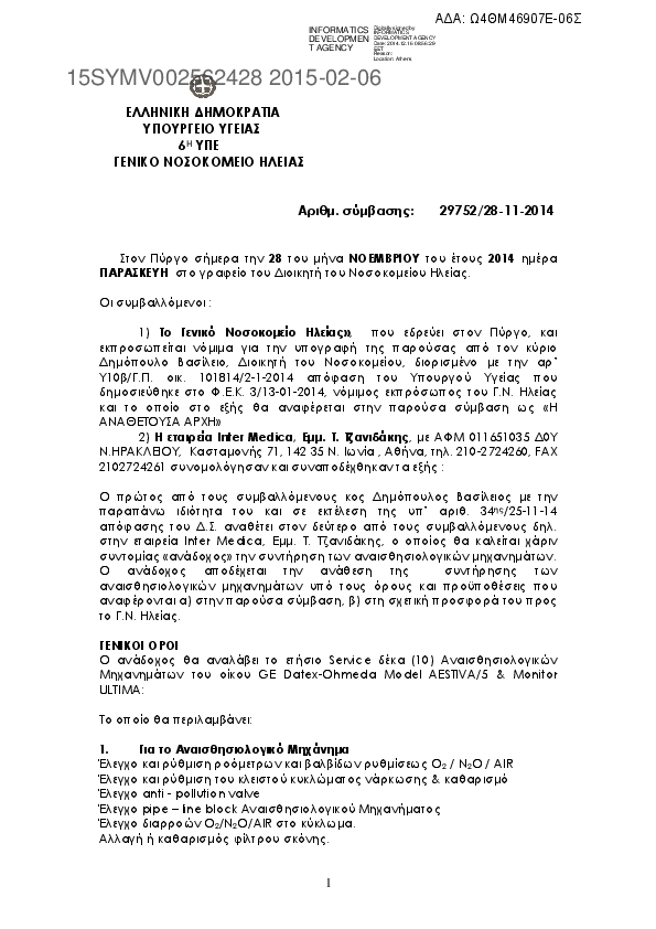 4. Ετήσιο Service δέκα (10) Αναισθησιολογικών Μηχανημάτων
