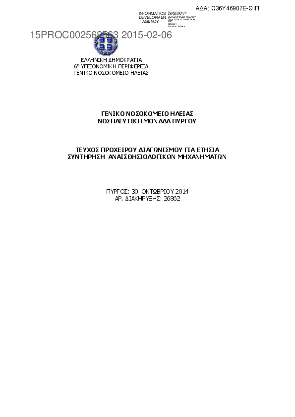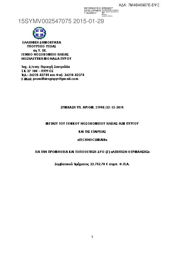 7. ΔΙΑΚΗΡΥΞΗ ΓΕΝΙΚΟΥ ΝΟΣΟΚΟΜΕΙΟΥ ΗΛΕΙΑΣ-Ν.Μ. ΠΥΡΓΟΥ ΓΙΑ ΧΟΛΕΡΥΘΡΙΝΟΜΕΤΡΟ ΑΙΜΑΤΗΡΟ