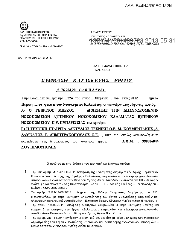 3. 47/2011 Βελτιώσεις κτιριακών και ηλεκτρομηχανολογικών υποδομών – Εγκαταστάσεων Κέντρου Υγείας Πύλου
